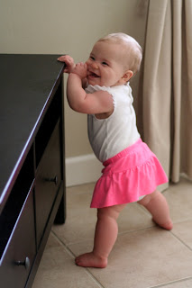 Our little girl isn't wasting any time...she's ready to move! Enough of this sitting and crawling business. We now prefer to stand.